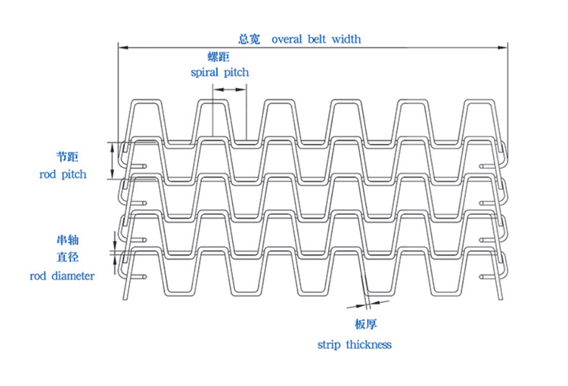 长城网是由支轴和金属片制作而成,支轴的两头 做焊接处理,一些规格的长城网的支轴两端也可以做锁边。可以提供边缘挡板和横向挡板。网带宽度有网带规 格和奇数孔的数量来确定。长城网需要很少的维护工作, 如果使用得当,寿命很长。材质有碳钢,镀锌钢,304 和316不锈钢。长城网用在以下方面:冷却设备,干 燥设备,面包生产设备,清洗设备,分拣设备,产品处理等设备。